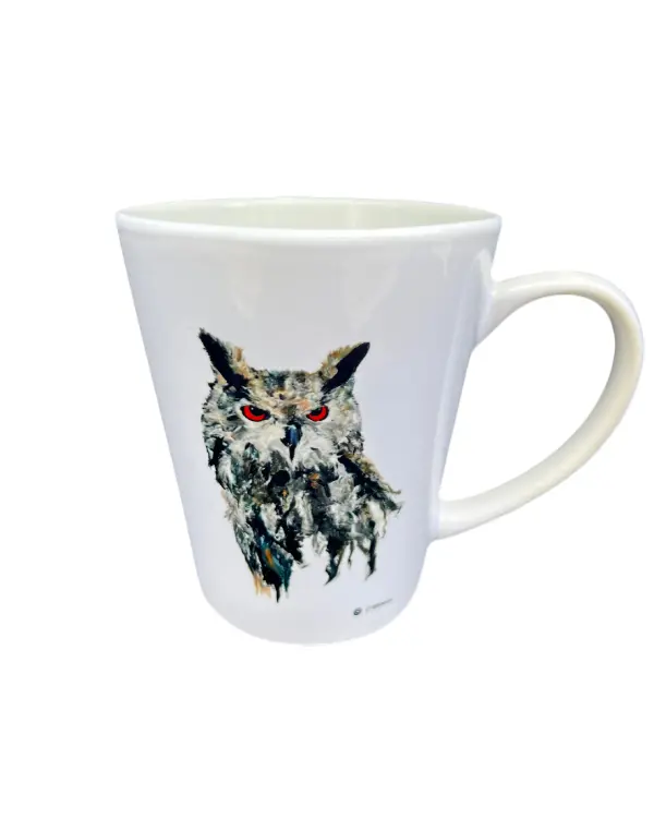 Grote witte latte mok met de afbeelding van een stoere oehoe – de uil der uilen! Wijs, een tikkeltje mysterieus en met een roep die je niet snel vergeet. Perfect voor nachtdieren, vroege vogels en iedereen die gek is op koffie, thee én vogels.