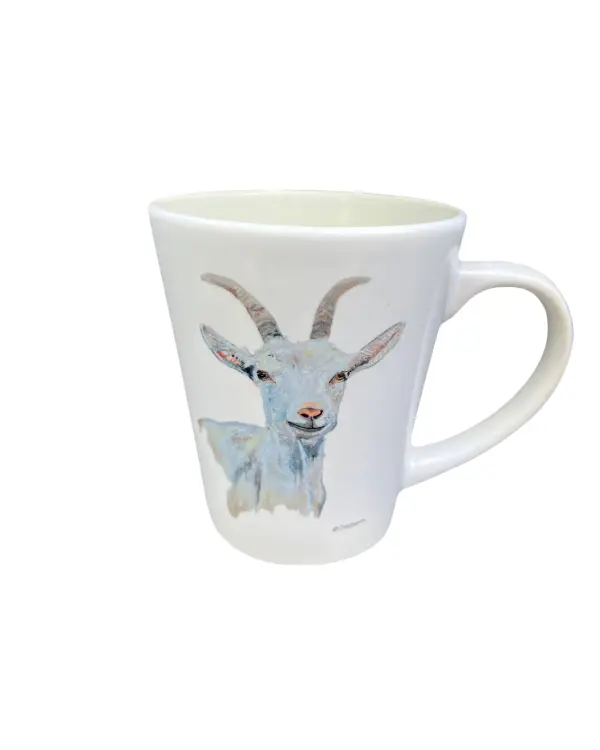 Geniet van een drankje in deze charmante witte latte mok, met de afbeelding van een witte geit. Het ontwerp straalt rust en eenvoud uit, perfect passend bij het landelijke leven en de sfeer van de boerderij. Ideaal voor op de ontbijttafel, in de tuin of tijdens een moment van ontspanning in de natuur.