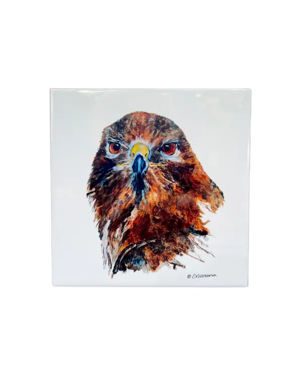 Unieke tegel met (handgeschilderde) afbeelding van een buizerd brengt de stille kracht van deze indrukwekkende roofvogel naar je interieur. Perfect voor de vogelliefhebber met oog voor detail én een liefde voor unieke decoratie.